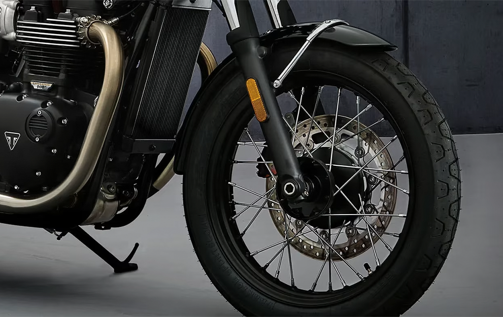 As rodas de estilo clássico com 32 rais combinam com os pneus Michelin Road Classic especialmente desenvolvidos para proporcionar uma pilotagem confiante.