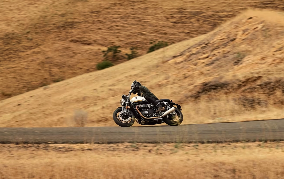 Atualizados para fornecer a melhor manobrabilidade da categoria, os garfos USD de cartucho de 43 mm de curso Marzocchi da Speed Twin 1200 combinam com os amortecedores traseiros duplos de 120 mm de curso, proporcionando um amortecimento controlado e uma pilotagem confiante.