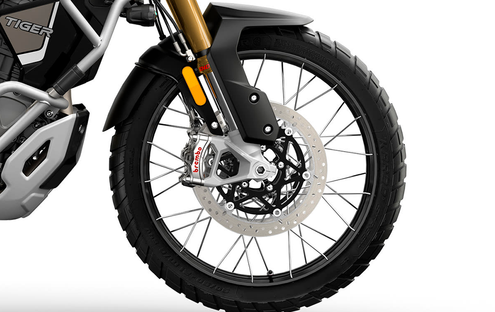A roda dianteira de 21” combinada com a suspensão semi-ativa Showa com curso de 220 mm permite total controle, até nos mais desafiadores terrenos. O sistema se ajusta automaticamente à carga e ao terreno, sem comprometer a manobrabilidade.