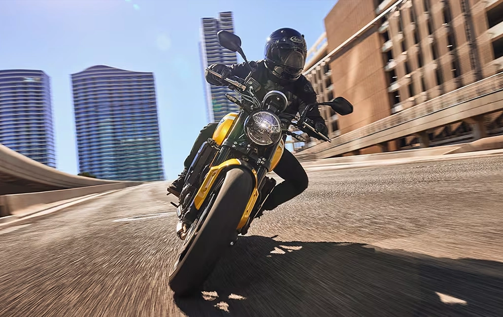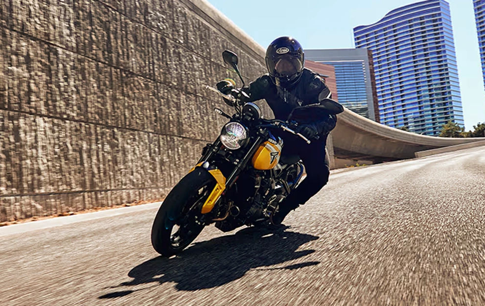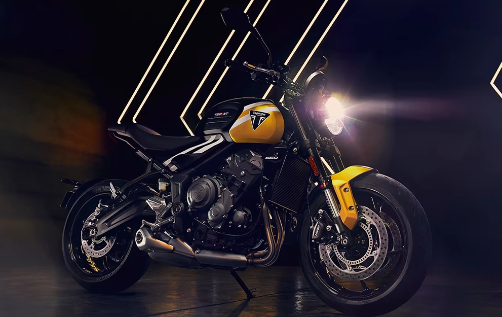 O motor tricilíndrico combina torque em baixa rotação com força na faixa intermediária e uma aceleração emocionante na rotação máxima. Junte-se a isso o que há de mais moderno em eletrônica de aprimoramento de pilotagem e pronto: a Trident oferece um controle incomparável, mantendo sua personalidade de curtição.