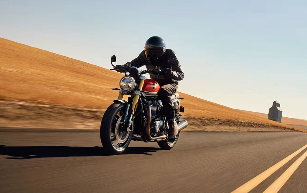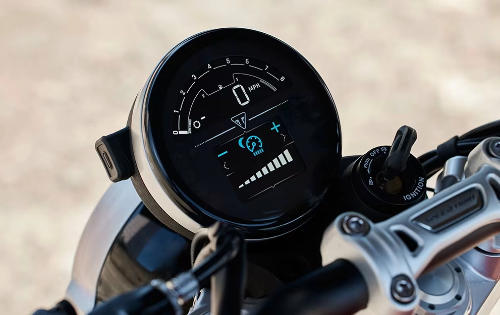 As trocas de marchas extremamente rápidas e perfeitas dispensam o uso do manete da embreagem. A Speed Twin 1200 RS é a primeira Bonneville Twin a ser equipada com o Triumph Shift Assist. Ele complementa a entrega de potência e sua personalidade, seja usando o torque em baixa rotação e as trocas de marcha curtas, acelerando até o limite máximo ou freando e reduzindo a marcha nas curvas.