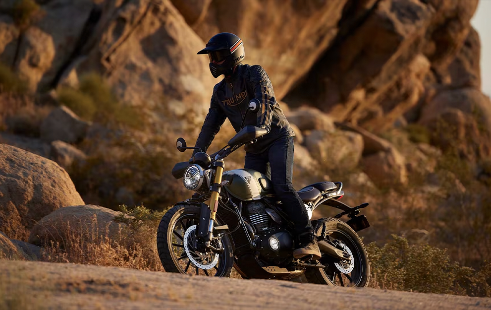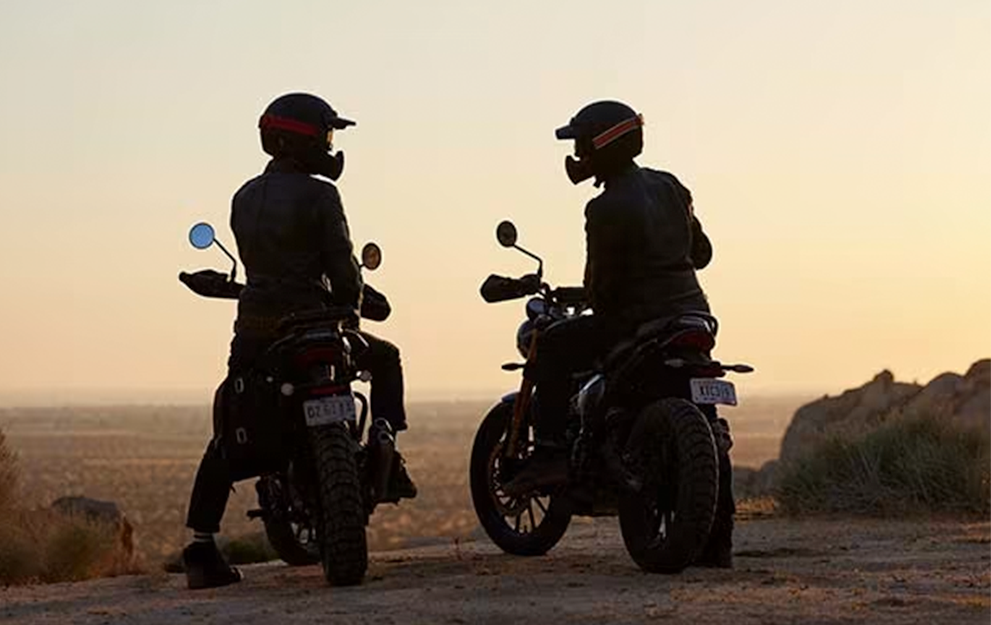Com presença em todos os terrenos, silhueta Scrambler atemporal e perfil de motor Triumph clássico. Das rodas para cima, o DNA de design icônico da Scrambler 400 X não poderia ser mais aparente.